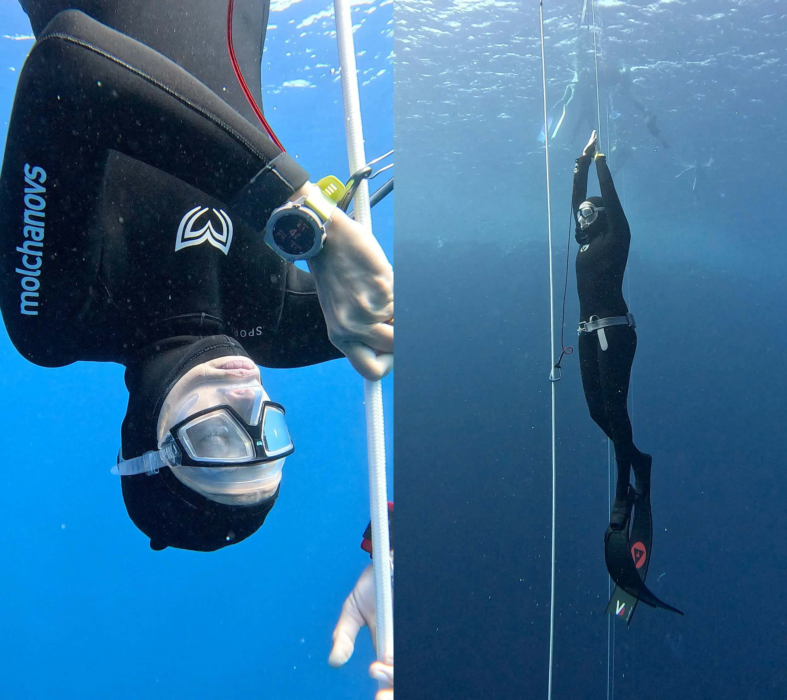 On the final dive of my training, I knew the stopper was set deeper than I’d ever gone. I pulled down, trying to stay relaxed as the pressure built in my chest. I thought I was getting close to 24 meters, but I stopped and turned a meter or two early. The pressure felt like too much, and suddenly I thought about how far I was from the surface.
