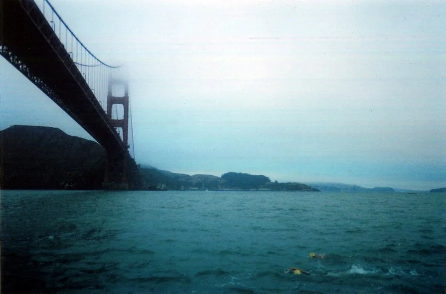 I started to have panic attacks. One after jumping off the pier in Aquatic Park, with no way out except a quarter-mile swim. Another under the Golden Gate Bridge after jumping off a boat to attempt the mile-long crossing. I panicked, bailed, and flagged down a support boat. Swim over.